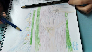 Hoje fomos à horta plantar diferentes tipos de semente como: pinhão, tomate, rúcula, melão e salsa.